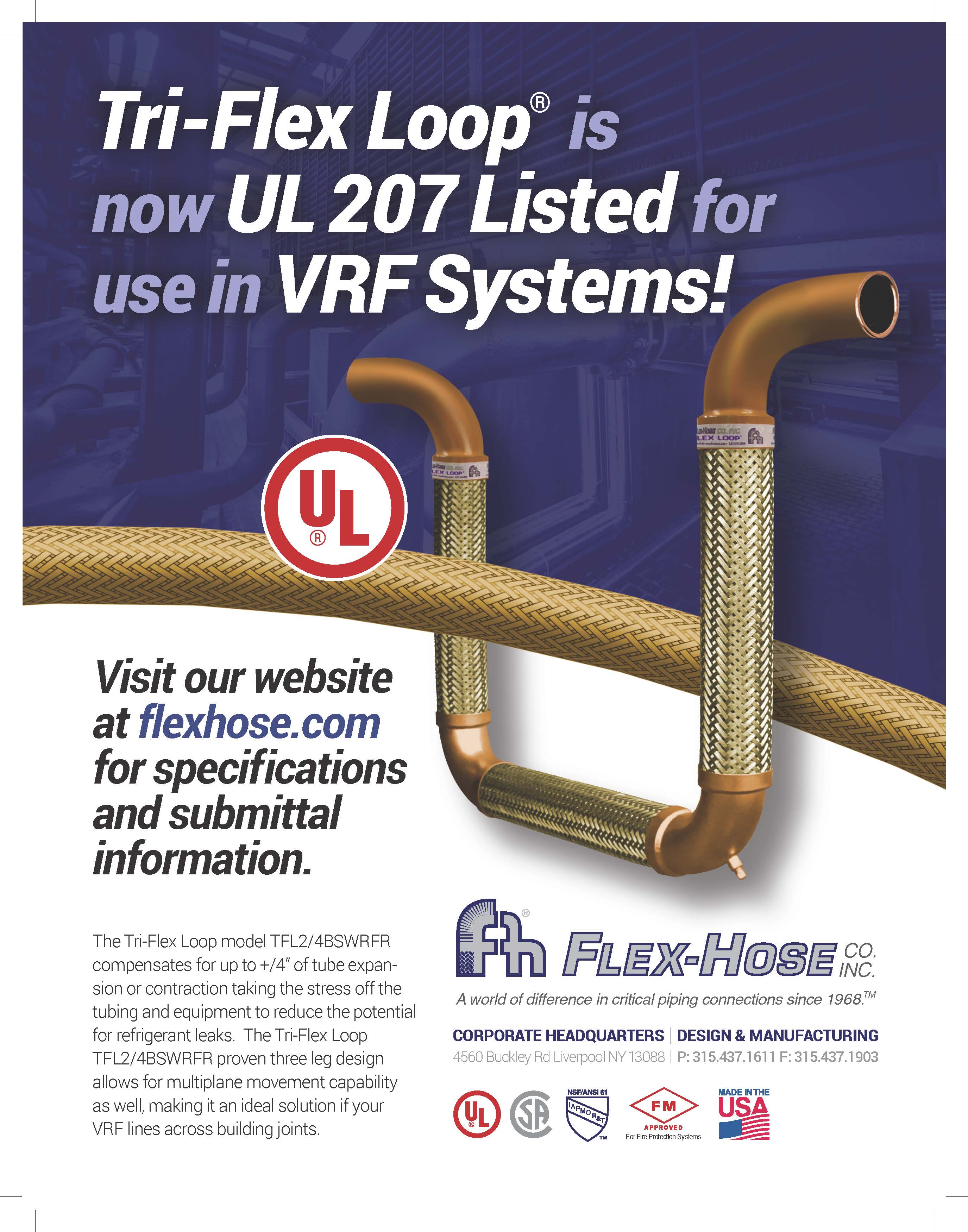 Flex-Hose Co.'s Tri-Flex Loop® makes a world of difference in critical piping connections. It is designed to provide a superior flexible pipe loop that will absorb and compensate multi-plane pipe movements simultaneously as well as reduce piping stress.